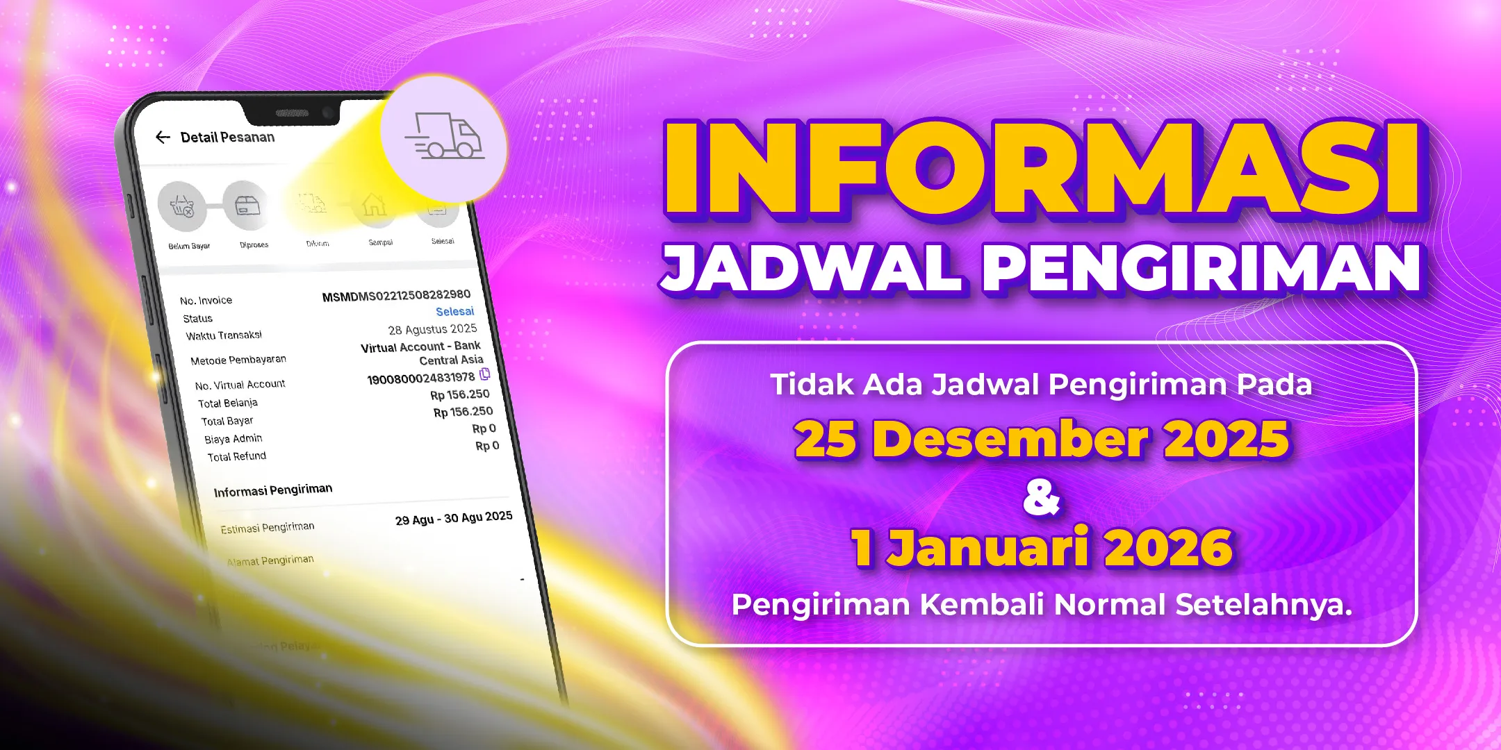 📢Menginformasikan bersamaan dengan hari raya Natal dan Tahun Baru bahwa pada tanggal 25 Desember 2025 dan 1 Januari 2026 tidak ada jadwal pengiriman.Pengiriman berjalan normal kembali... read more